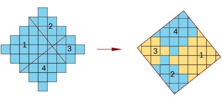 waarmee dan een vierkant kan gevormd worden